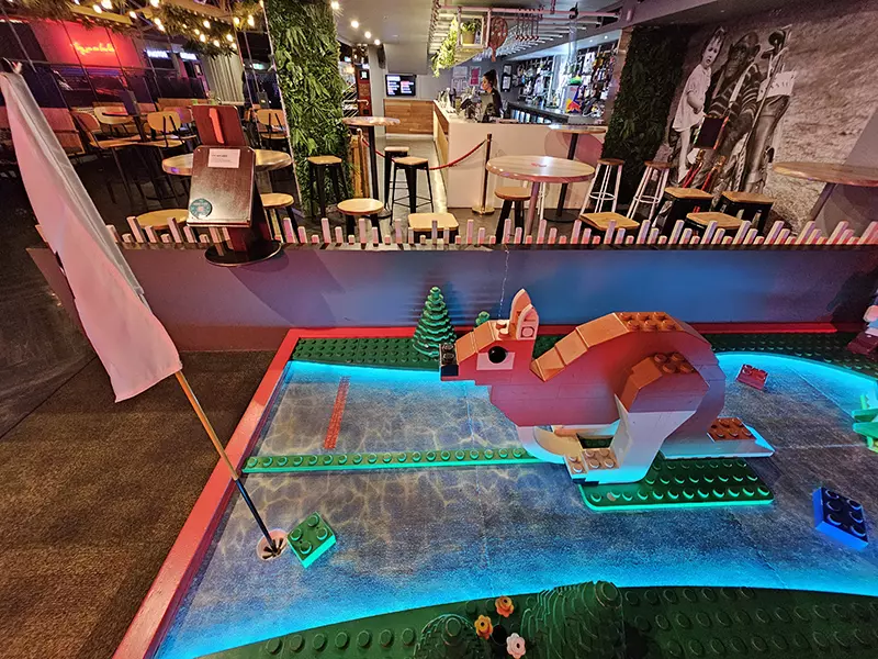 The Holey Moley Wintergarden course is pretty small in all. Each hole is located closely alongside the other and the holes are not particularly long, even for a putt putt course. Your game could be over pretty quickly if you rush through, but the course makes up for its brevity with its creativity and leisure options, which are pretty ace.