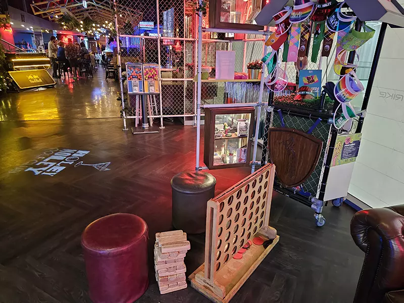 Upon entry, there’s a leather lounge surrounded by golfing paraphernalia and a large game of Connect Four to keep you occupied while you’re waiting. Although often you won’t have to. You simply pay at the counter, grab your tokens and head back to the ‘pro shop’ opposite the counter. Here you pick a club and put your token in a gumball slot to retrieve your golf balls. This is where the creativity begins.